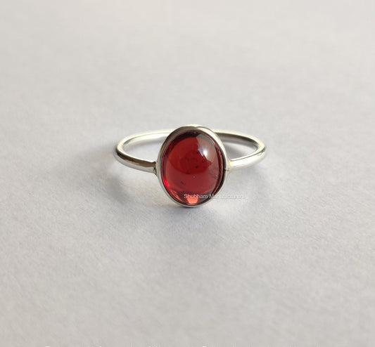 Natural Garnet Ring, 925 Sterling Silver Ring, Cabochon Gemstone Ring, January Birthstone, Red Stone Ring, Handmade Gift for Her,Simple Ring