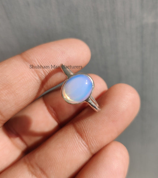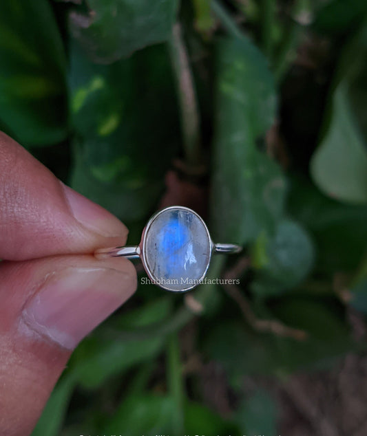 Natural Rainbow Moonstone Ring, 925 Sterling Silver Ring, Blue Fire Moonstone, Gemstone Stacking Ring, Dainty Silver Ring, Minimalist Ring