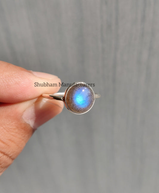 Labradorite Ring, 925 Sterling Silver Ring, Blue Flash Stone Ring, Labradorite Jewelry, Natural Gemstone Ring, Simple Everyday Ring for Her