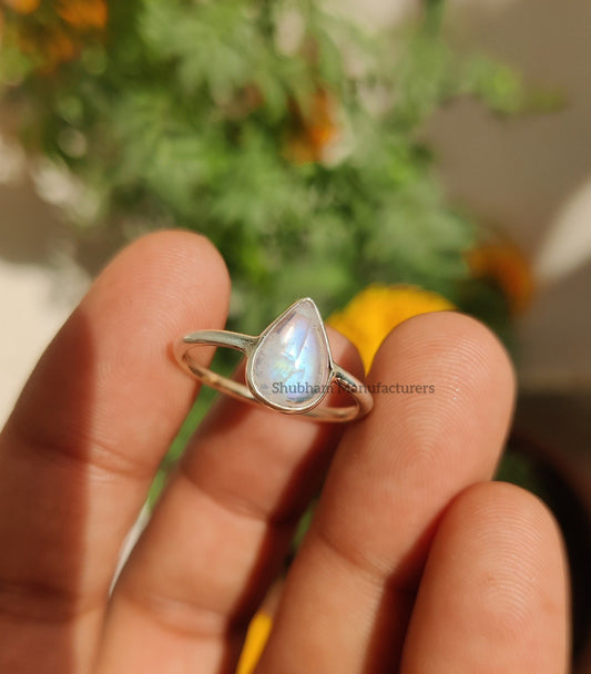 Natural Rainbow Moonstone Ring, 925 Sterling Silver Ring, Blue Fire Pear Shape Moonstone Gemstone Women Handmade Jewelry, Gift for her Rings