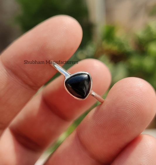 Natural Black Onyx Ring, 925 Sterling Silver Ring, Tiny Gemstone Ring, Dainty Onyx Ring, Birthstone Ring, Thin Band Ring, Gift for Women