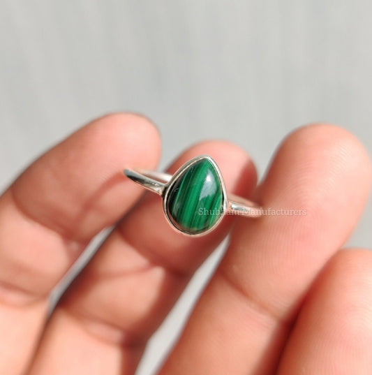 Natural Malachite Ring, 928 Sterling Silver Ring, Everyday Ring for Women, Malachite Silver Jewelry, Green Stone Ring, Handmade Gift for Her