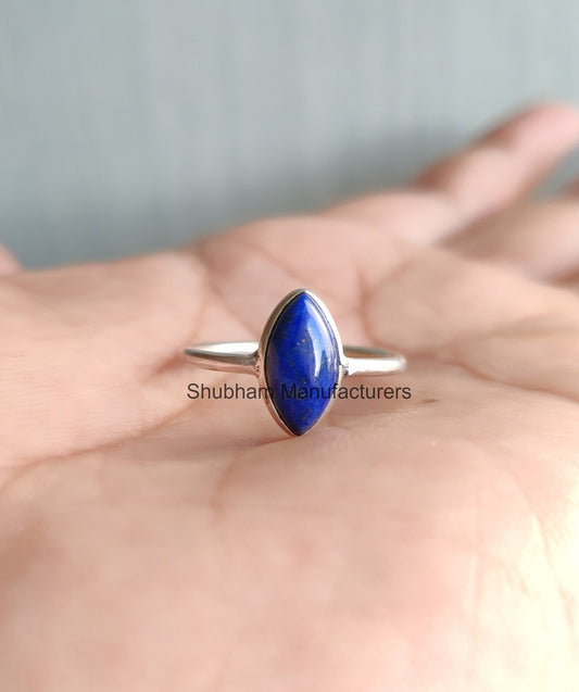 Lapis Lazuli Ring, 925 Sterling Silver Ring, Blue Gemstone Ring, Simple Everyday Ring, Natural Lapis Jewelry, Marquise Shape Ring for Women