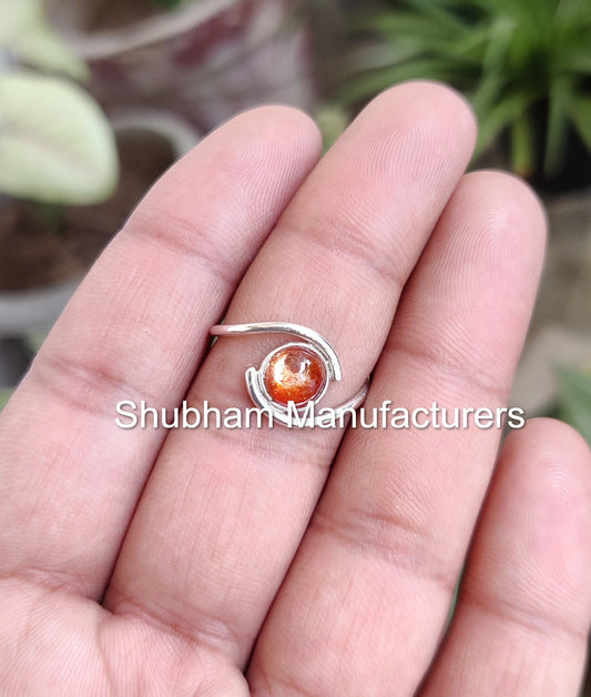 Sun Stone Ring, 925 Sterling Silver Ring, Sunstone Jewelry, Natural Gemstone Ring, Silver Birthstone Ring, Handmade Gift for Her,Bypass Ring
