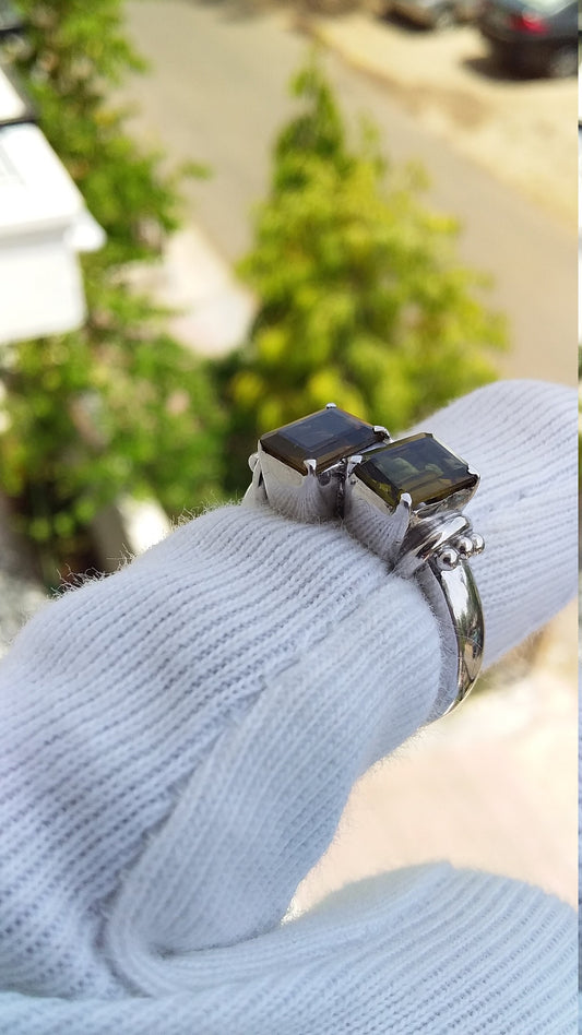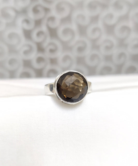 Natural Smoky Quartz Ring, Faceted Stone Ring, 925 Sterling Silver Jewelry, Brown Gemstone Ring, Handmade Gift for Her, Ring Size 7