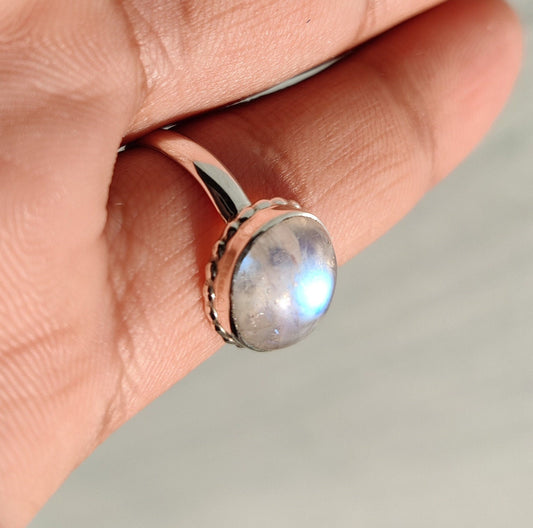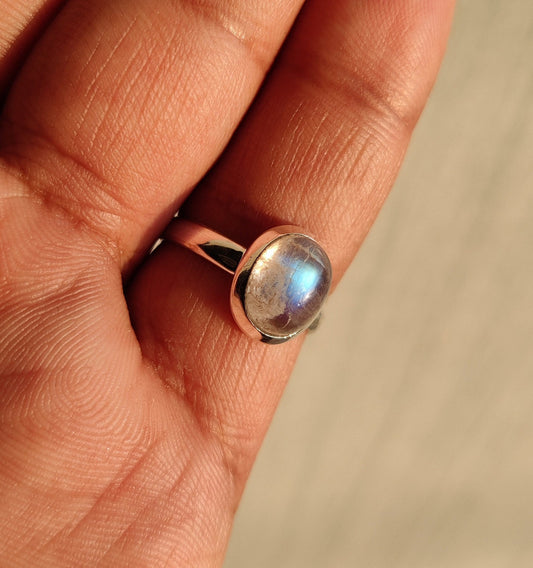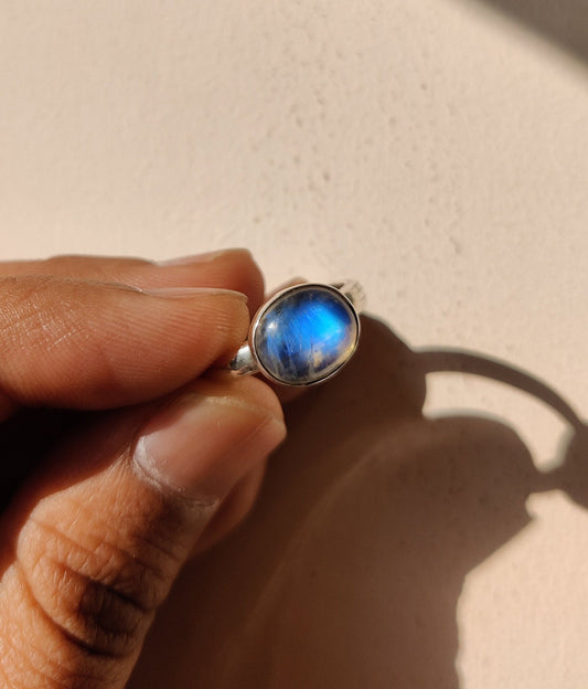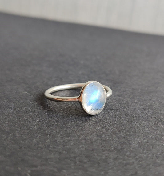 Rainbow Moonstone Ring, 925 Sterling Silver Ring, Birthstone Gemstone Ring, Blue Flash Moonstone Ring, Simple Boho Ring, Ring for Women