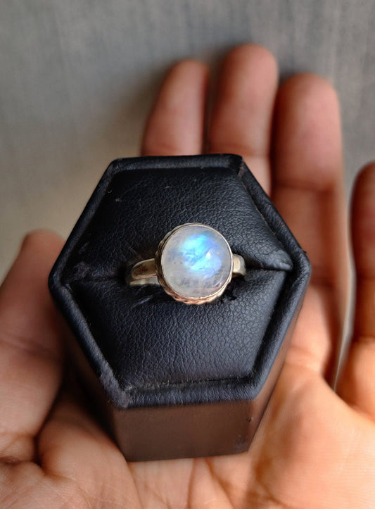 Natural Rainbow Moonstone Ring, Blue Flashy Gemstone Ring, 925 Sterling Silver Jewelry, Unisex Moonstone Jewelry, Promise Ring Size 9