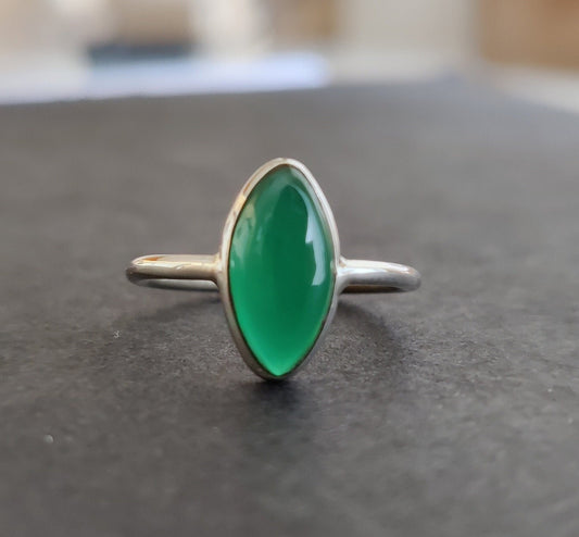 Natural Green Onyx Ring, 925 Sterling Silver Ring, Dainty Stone Ring, Green Gemstone Ring, December Birthstone Ring, Marquise Ring for Her