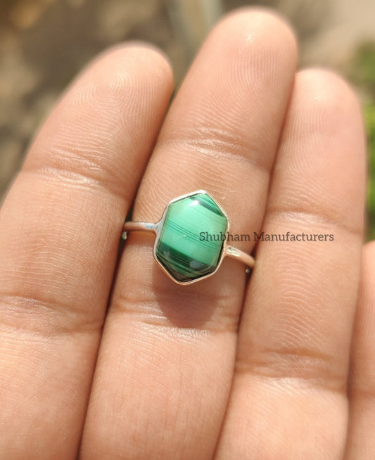 Natural Malachite Ring, 925 Sterling Silver Ring, Fancy Shape Ring, Silver Malachite Jewelry, Women's Ring, Hexagon Ring, Birthstone Gift