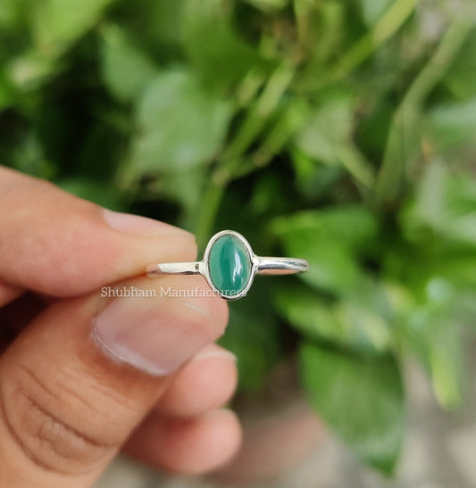 Natural Green Onyx Ring, 925 Sterling Silver Ring, Green Stone, Cabochon Gemstone, Dainty Silver Ring, Minimalist Ring, Tiny Onyx Ring