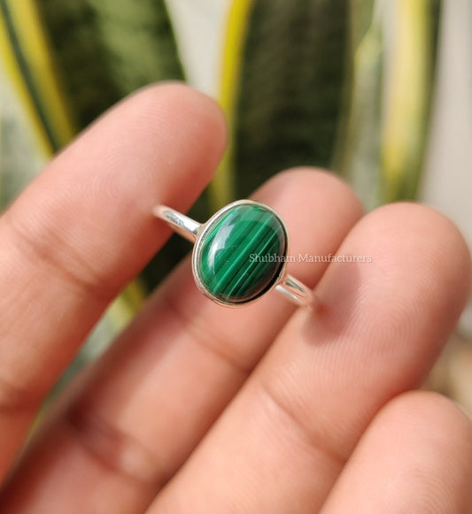 Malachite Ring, 925 Sterling Silver Ring, Malachite Silver Jewelry, Oval Shape Ring, Stackable Gemstone Ring, Handmade Gift for Her,