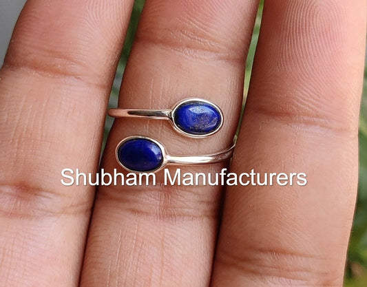 Natural Lapis Lazuli Ring, 925 Sterling Silver Ring, Dual Stone Ring, Blue Gemstone, Tiny Minimalist Ring for Her, Buypass Adjustable Ring