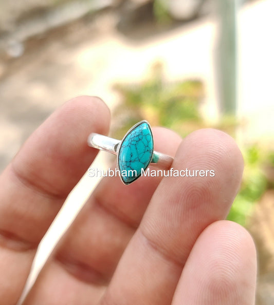 Genuine Turquoise Ring, 925 Sterling Silver Ring, Boho Gemstone Ring, Marquise Shape Ring, Handmade Turquoise Jewelry, December Birthstone