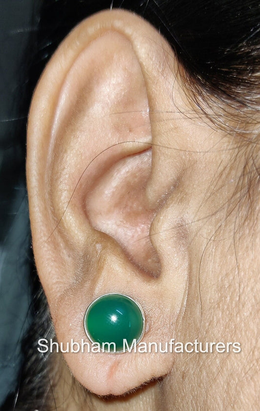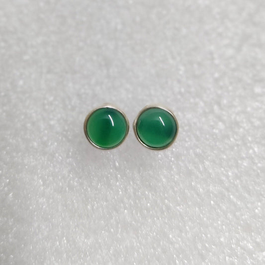 Green Onyx Stud Earrings, 925 Sterling Silver Studs, Natural Stone Studs, Birthstone Earrings, Round Cabochon Gemstone Studs,Bridesmaid Gift