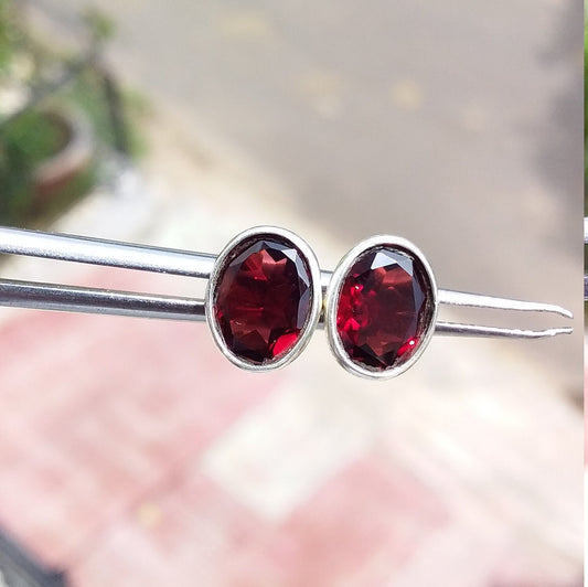 Natural Red Garnet Stud Earrings, 925 Sterling Silver Studs, Garnet Earrings, Gemstone Post Earrings, January Birthstone, Gift for Her