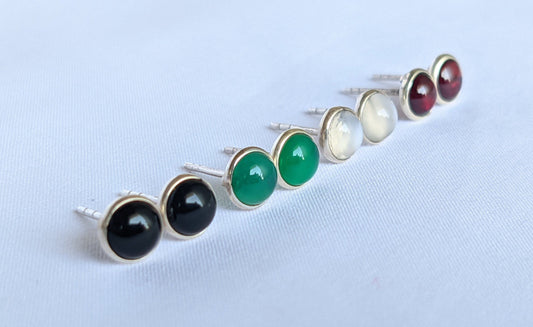 Natural Gemstone Stud Earrings, Black Onyx, Green Onyx, White Moonstone, Red Garnet, Tiny Studs, Small Stone Earrings, for Girls, Women