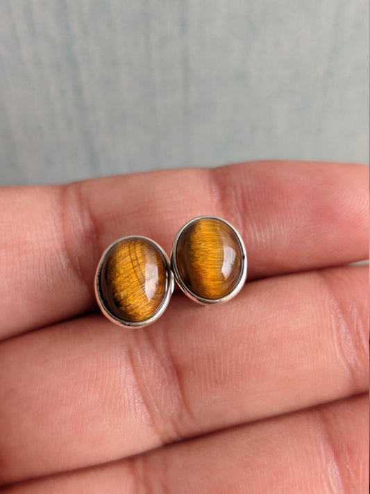 Natural Tigers Eye Stud Earrings, 926 Sterling Silver Studs, Brown Gemstone Studs, Healing Crystal Studs, Post Earrings, Handmade Jewelry