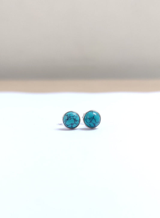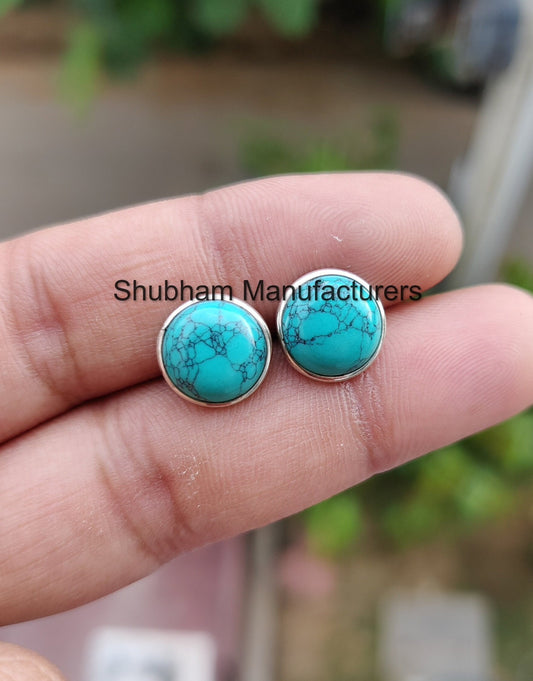 Turquoise Stud Earrings, 925 Sterling Silver Studs, Round Shape Earrings, Blue Gemstone Studs, Jewelry Gift for Women, Minimalist Style