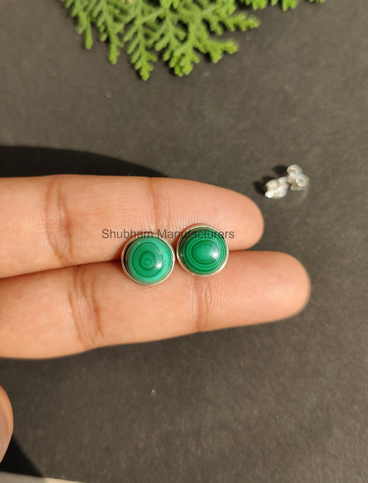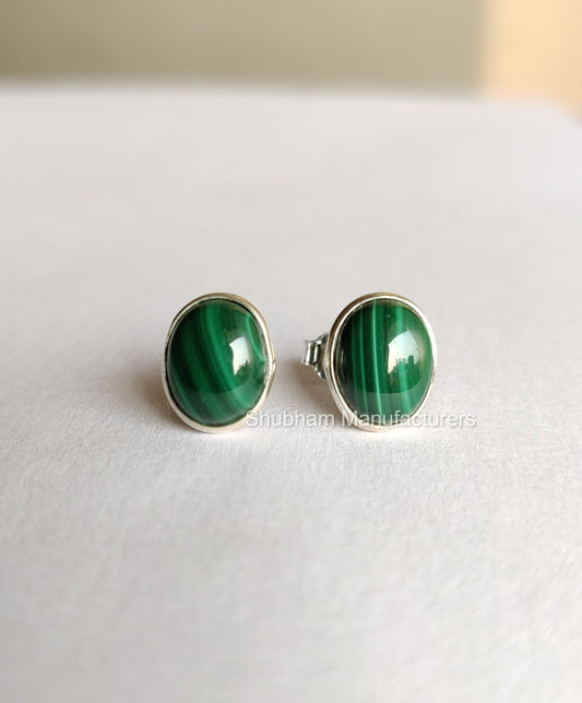 Malachite Stud Earrings, 925 Sterling Silver Studs, Silver Post Earrings, Green Gemstone Studs, Natural Stone Studs, Studs for Women/Girls