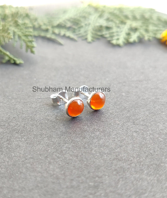 Carnelian Studs Earrings, 925 Sterling Silver Studs, Orange Crystal Studs, Natural Gemstone Studs, Carnelian Post Earrings, Studs for Girls