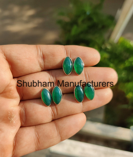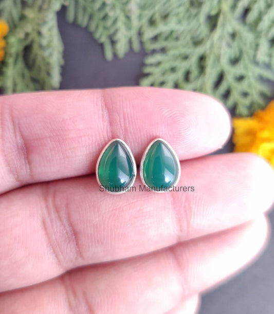 Green Onyx Stud Earrings, 925 Sterling Silver Studs, Green Gemstone Tiny Studs, Emerald Green Earrings, Daily wear Jewelry, Gift for Her