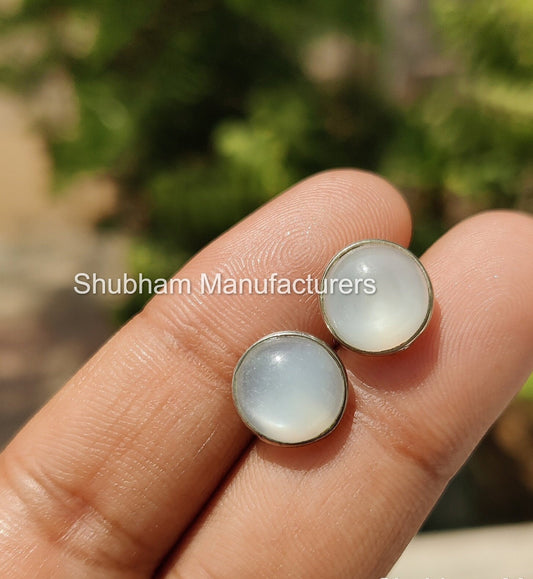 Natural White Moonstone Studs, 925 Sterling Silver Studs, White Moonstone Post Earrings, Silver Moonstone Minimalist Jewelry,June Birthstone