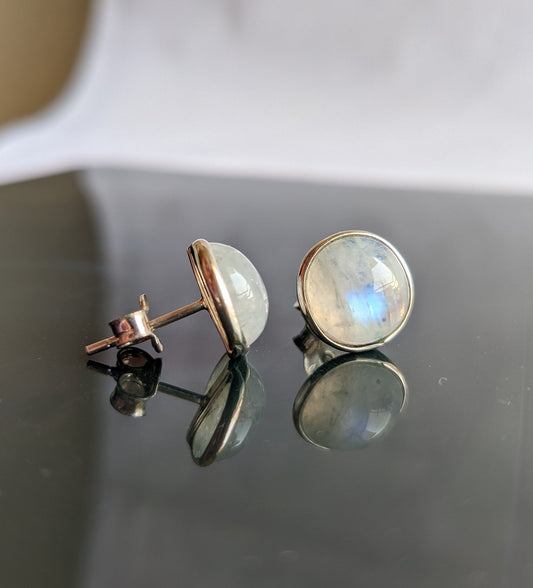 Rainbow Moonstone Studs Earrings, 925 Sterling Silver, June Birthstone, Moonstone Earrings, Gemstone Studs, Blue Flash Moonstone Jewelry