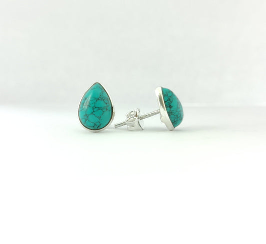 Natural Turquoise Stud Earrings, 925 Sterling Silver Studs, Turquoise Post Earrings, Tibetan Turquoise Jewelry, Gemstone Studs for Her