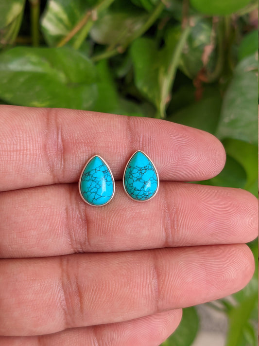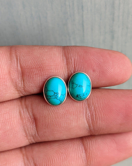 Genuine Turquoise Stud Earrings, 925 Sterling Silver Studs, Natural Stone Studs, December Birthstone Studs, Gift for Women, Gemstone Studs