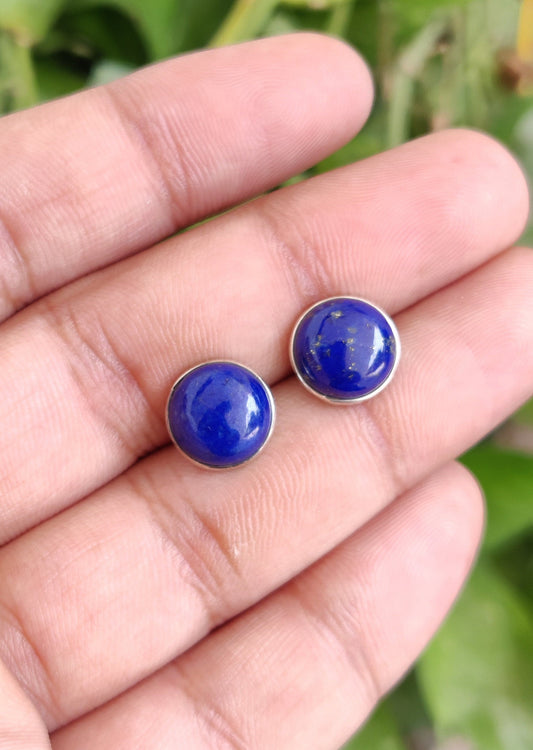 Natural Lapis Lazuli Stud Earrings, 925 Sterling Silver Studs, Blue Lapis Earrings, Gemstone Studs, 10 mm Studs, Birthstone Jewelry for Her