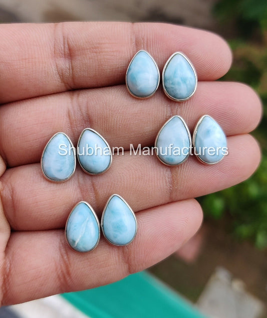 Natural Larimar Stud Earrings, 925 Sterling Silver Studs , Simple Everyday Studs, Blue Gemstone Earrings, Cabochon Stone, Teardrop Studs