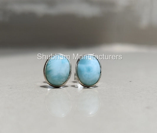 Natural Larimar Stud Earrings, 925 Sterling Silver Studs, Natural Gemstone Studs, Ocean Blue Aqua Earrings, Minimalist Earrings for Women