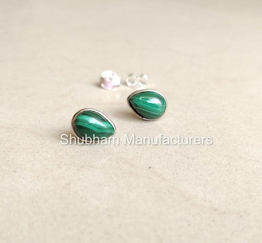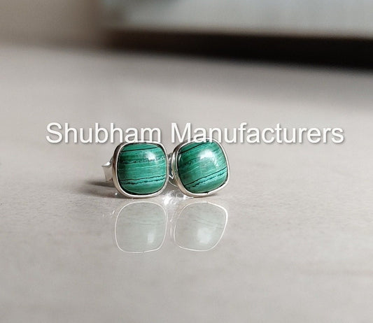 Natural Malachite Stud Earrings, 925 Sterling Silver Studs, Malachite Silver Post Earrings, Dainty Gemstone Studs, Green Stone Jewelry
