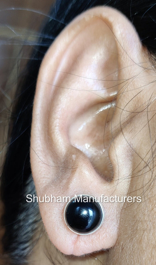 Natural Black Onyx Studs Earrings, 925 Sterling Silver Studs, Black Studs Everyday Earring, Onyx Jewelry, Cabochon Stone Stud, Unisex Studs