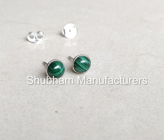 Malachite Stud Earrings, 925 Sterling Silver Studs, Semi Precious Stone Studs, Tiny Dainty Earrings for Girls And Women, Green Gemstone Stud