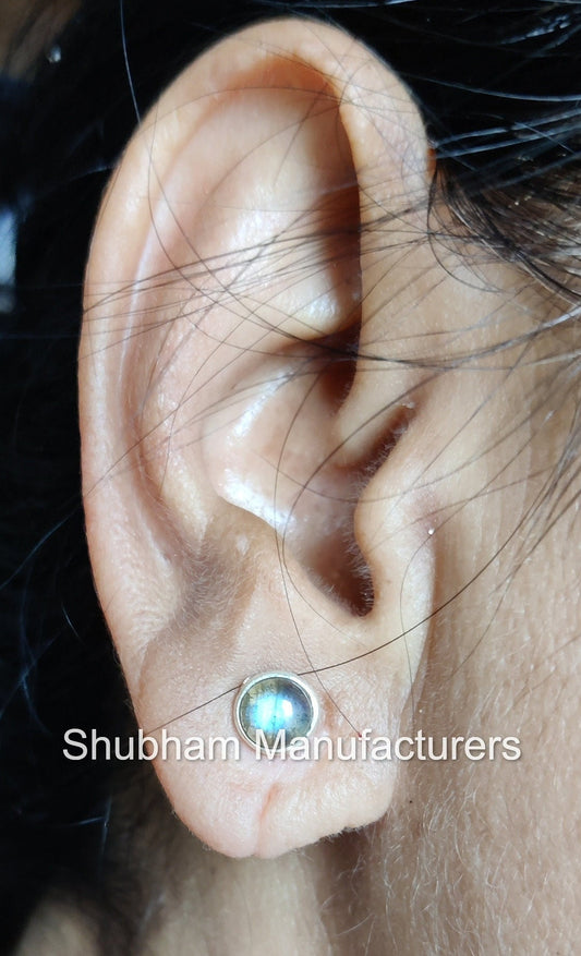 Labradorite Stud Earrings, 925 Sterling Silver Studs, Blue Fire Labradorite Jewelry, Tiny Everyday Earrings, Natural Gemstone Stud for Girls