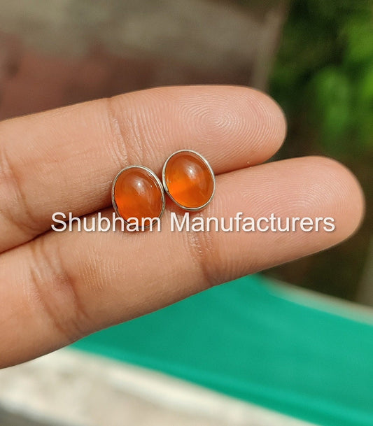Natural Carnelian Stud Earrings, 925 Sterling Silver Studs, Healing Crystal Earrings, Orange Gemstone Studs, Post Earrings Stone,Dainty Stud