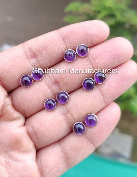 Natural Amethyst Stud Earrings, 925 Sterling Silver Studs, Purple Amethyst Crystal Studs, February Birthstone Earrings, Tiny Post Earrings