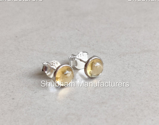 Natural Citrine Stud Earrings, 925 Sterling Silver Studs, Tiny Citrine Post Earrings, November Birthstone, Yellow Citrine Jewelry for Women