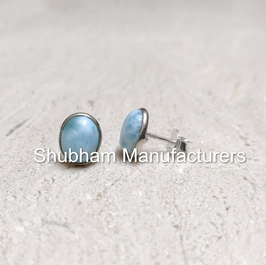 Natural Larimar Stud Earrings, 925 Sterling Silver Studs, Natural Stone, Blue Gemstone Jewelry, Simple Everyday Studs for Girls,Gift for Her