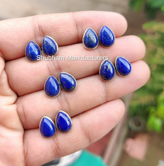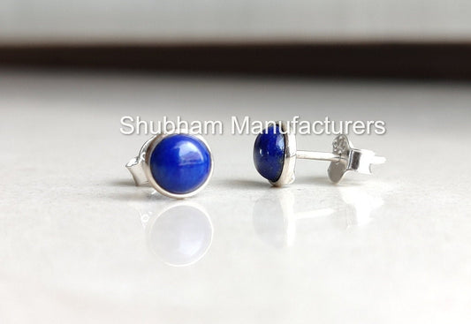 Natural Lapis Lazuli Stud Earrings, 925 Sterling Silver Studs, 6mm Blue Lapis Studs, Tiny Blue Earrings, Studs for Girls & Women,Dainty Stud