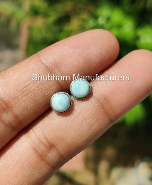 Larimar Tiny Stud Earrings, 925 Sterling Silver Studs, Blue Gemstone Earrings, Simple Everyday Studs, Small Larimar Post Earrings for Girls