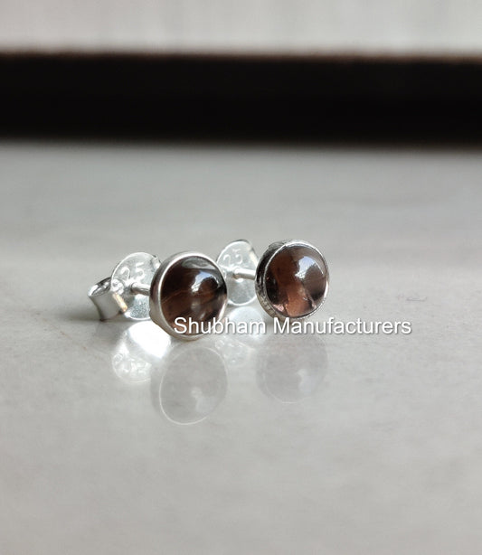 Smoky Quartz Stud Earrings, 925 Sterling Silver Studs, Tiny Post Earrings, Minimalist Style Earrings, Brown Gemstone Earrings, 6mm Studs